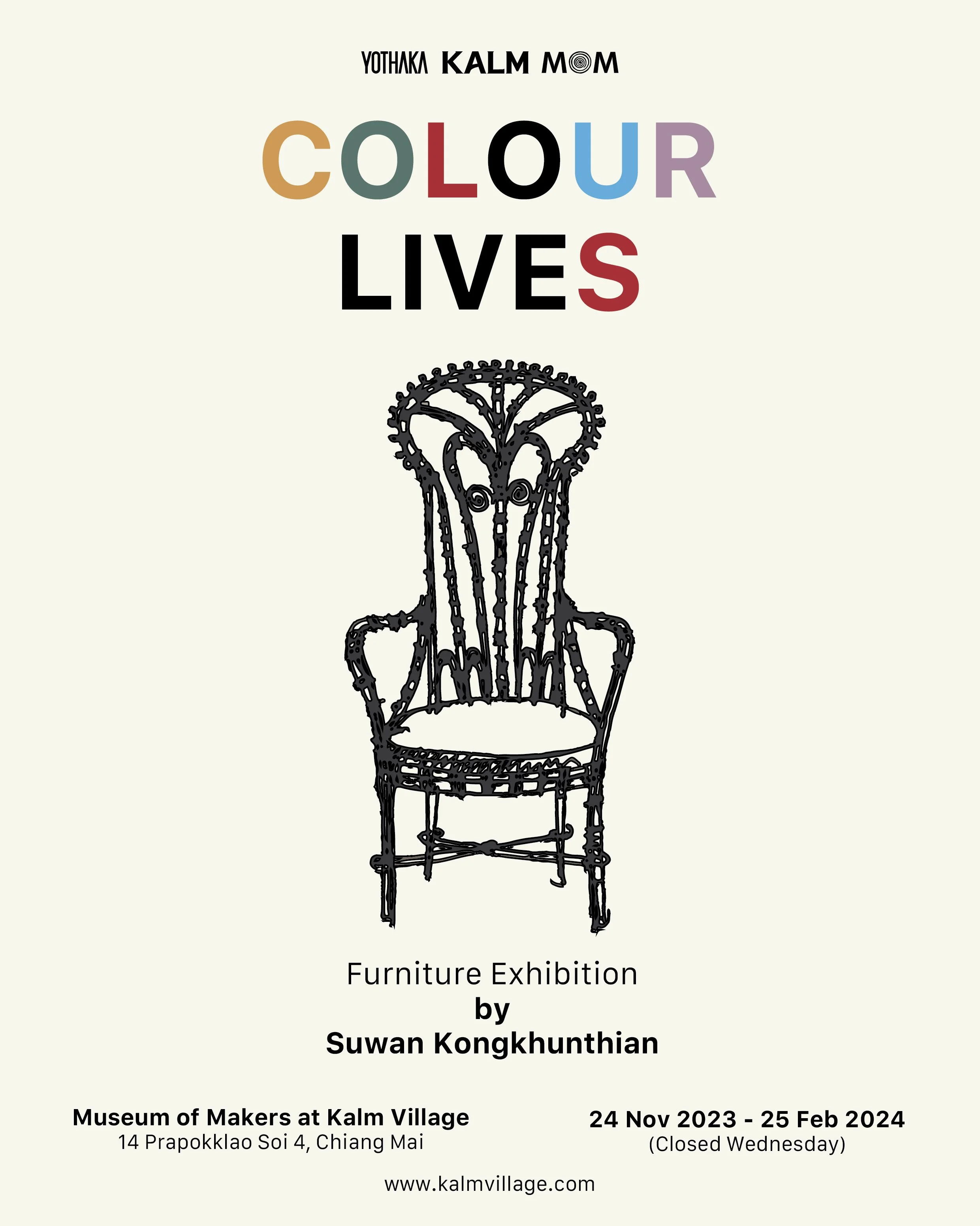 The master designer Suwan Kongkhunthian in collaboration with Kalm Village, presents a colorful furniture exhibition “Colour Lives”.
