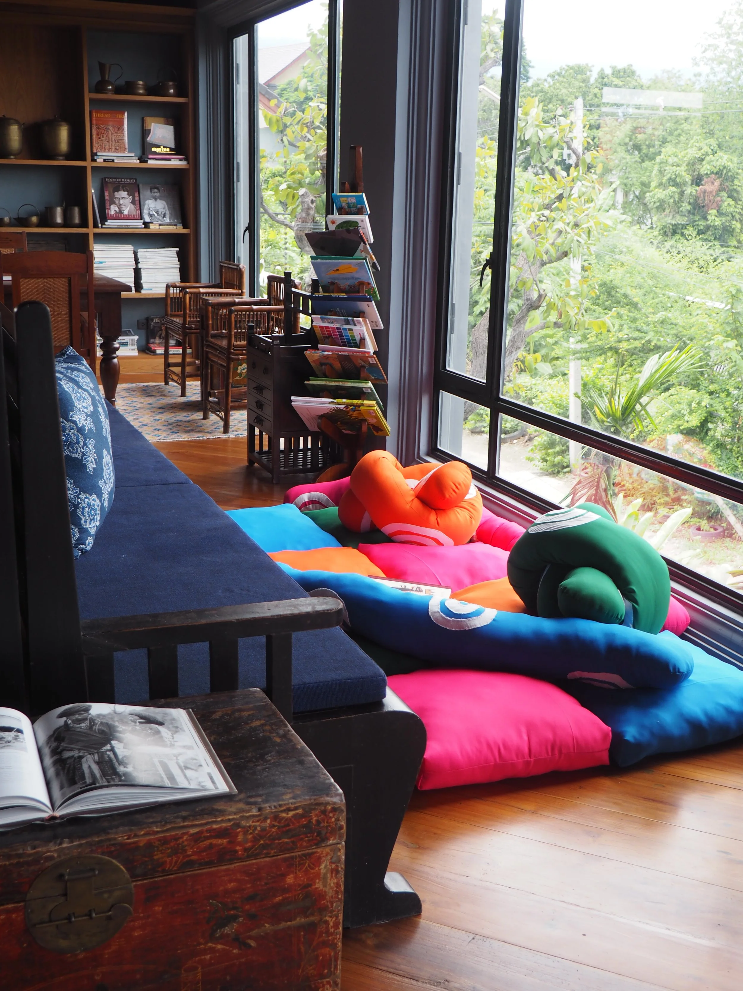 Visit Gallery Archive Lifestyle Stores Glass Pavilion Multi-purpose Hall Coffehouse Restaurant Library KALM VILLAGEMon-Sun 9:30 AM - 6:30 PMClosed every Wednesday Galleryshowcases and curates rotating exhibitions under the topic of art, crafts and culture Kalm Archivea permanent collection of textiles exhibition from different regions of Thailand, as well as special section from Indonesia and Myanmar. Lifestyle Stores3 stores selling variety of clothings and home goods, designed in-house with collaboration with artisans from Thailand and abroad. Restaurantserving comfort food with our grandma's recipes, including rotating seasonal menus. Coffeehouseserving coffee and tea menus with ingredients sourced locally. There's also a market area with curated goods from around Thailand. Libraryopen to the public, with variety of art, crafts, history, architecture books in Thai and English languages. Kalm Multi-purpose Hallhosts variety of activities and events. Available for rental (to inquire please contact info@kalmvillage.com). Kalm Glass Paviliona contemporary Lanna pavilion with transparent roof, overlooking the city and Wat Chedi Luang. KALM VILLAGEMon-Sun 9:30 AM - 6:30 PMClosed every Wednesday